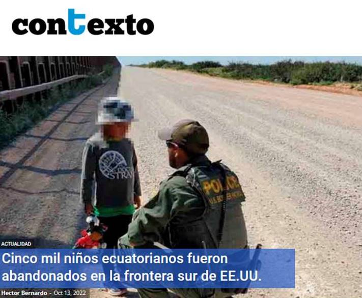De acordo com dados oficiais da Alfândega e Proteção de Fronteiras dos EUA, entre 2020 e 2022, pelo menos 4.994 crianças do Equador foram abandonadas na fronteira EUA-México. A crise migratória equatoriana é silenciada pela mídia hegemônica da região. O que a mídia diria se essas crianças fossem venezuelanas ou cubanas?